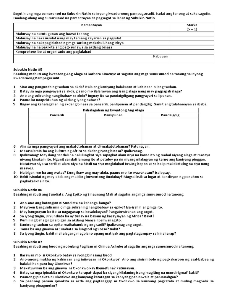 Naibibigay ang buod ng isang epiko mula sa kanlurang afrika at nasusuri ito tungkol s a a damdaming nakapaloob sa akda C. Ilan sa mga panitikang tumatak at nakaimpluwensiya sa buong daigdig ay ang mitolohiya ng Rome sanaysay ng Greece parabulang mula sa Syria nobela at maikling kuwento ng France epiko ng Sumeria at tula ng Egypt. An Epic of the Old Mali salin sa Ingles ni JD.